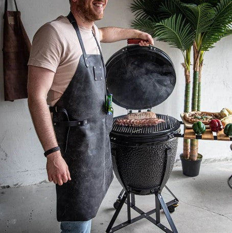 With the Mr. Smith BBQ Apron Black, you, a true BBQ aficionado, will always have your tools close at hand, and your clothing will stay clean. This sturdy leather apron is tanned in the Netherlands from a single piece of high-quality European leather. Comes with a handy pocket for your cell phone or a beer that you can open with the included beer opener.