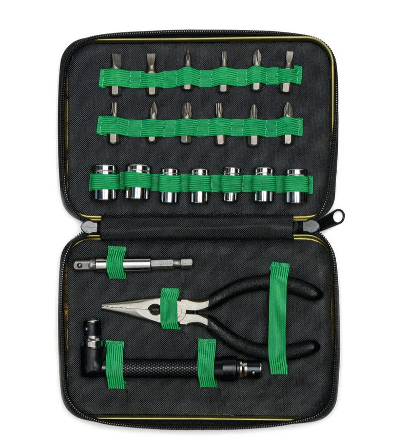 Tackle those big projects without taking up space! This Compact Tool Kit gets the job done with a 19-piece mini bit/socket set and pair of needle nose pliers. Store everything easily in the included tin pouch with fabric lining for easy transport and clever gifting.